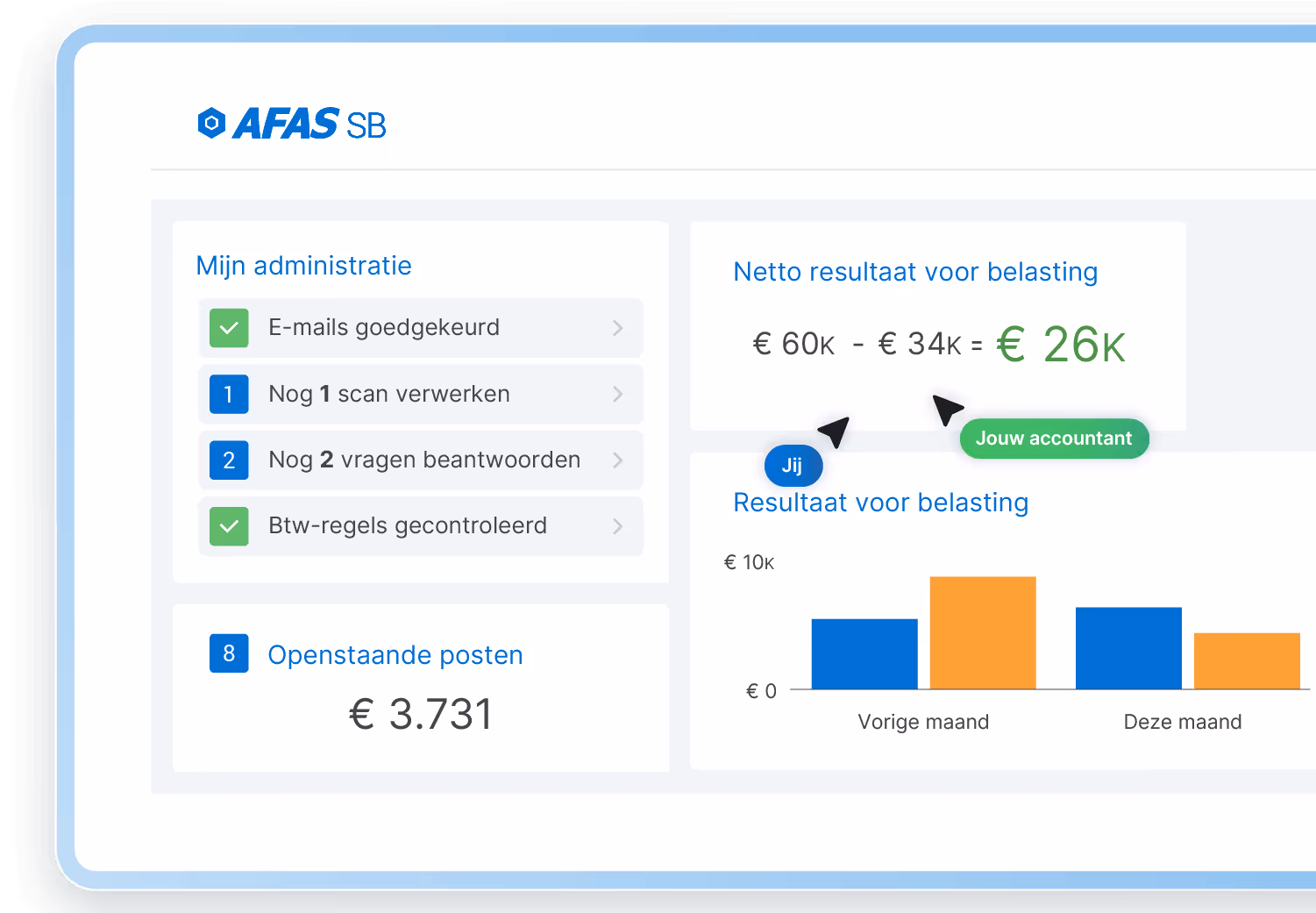 Met AFAS SB staat je jaarrekening al voor je klaar. De software haalt alle gegevens direct uit je administratie en zet ze overzichtelijk op een rij.