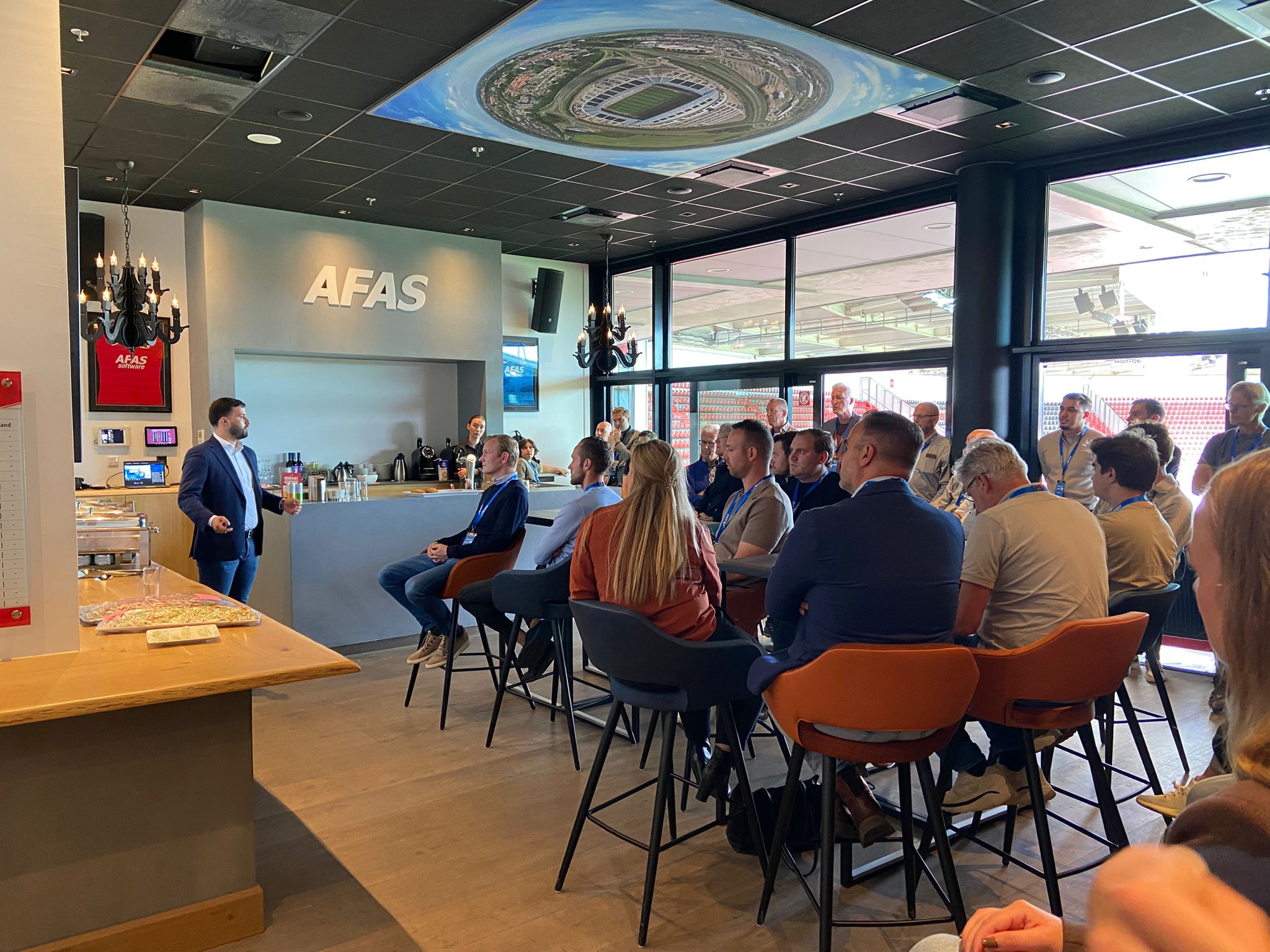 Voorafgaand aan de wedstrijd was er een moment om elkaar te leren kennen. In de Skybox waren accountants aanwezig om meer te leren over de mogelijkheden van AFAS SB. Het was mooi om te zien dat er onderling kennis werd uitgewisseld, waardoor iedereen vol inspiratie gezamenlijk de wedstrijd ging kijken.